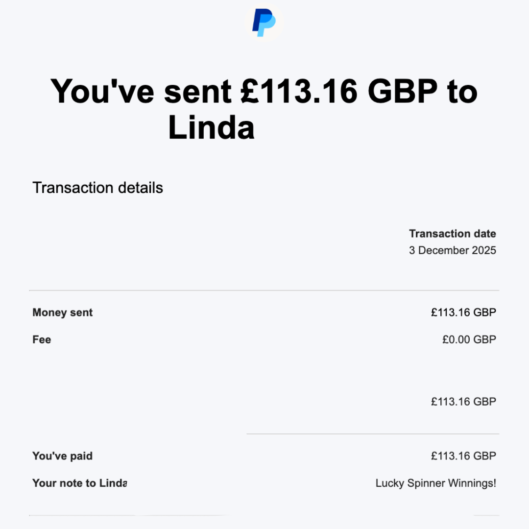Well done to one of our Lucky Spinner members on winning over £100 on our Lucky Spinner video draw! 🥳