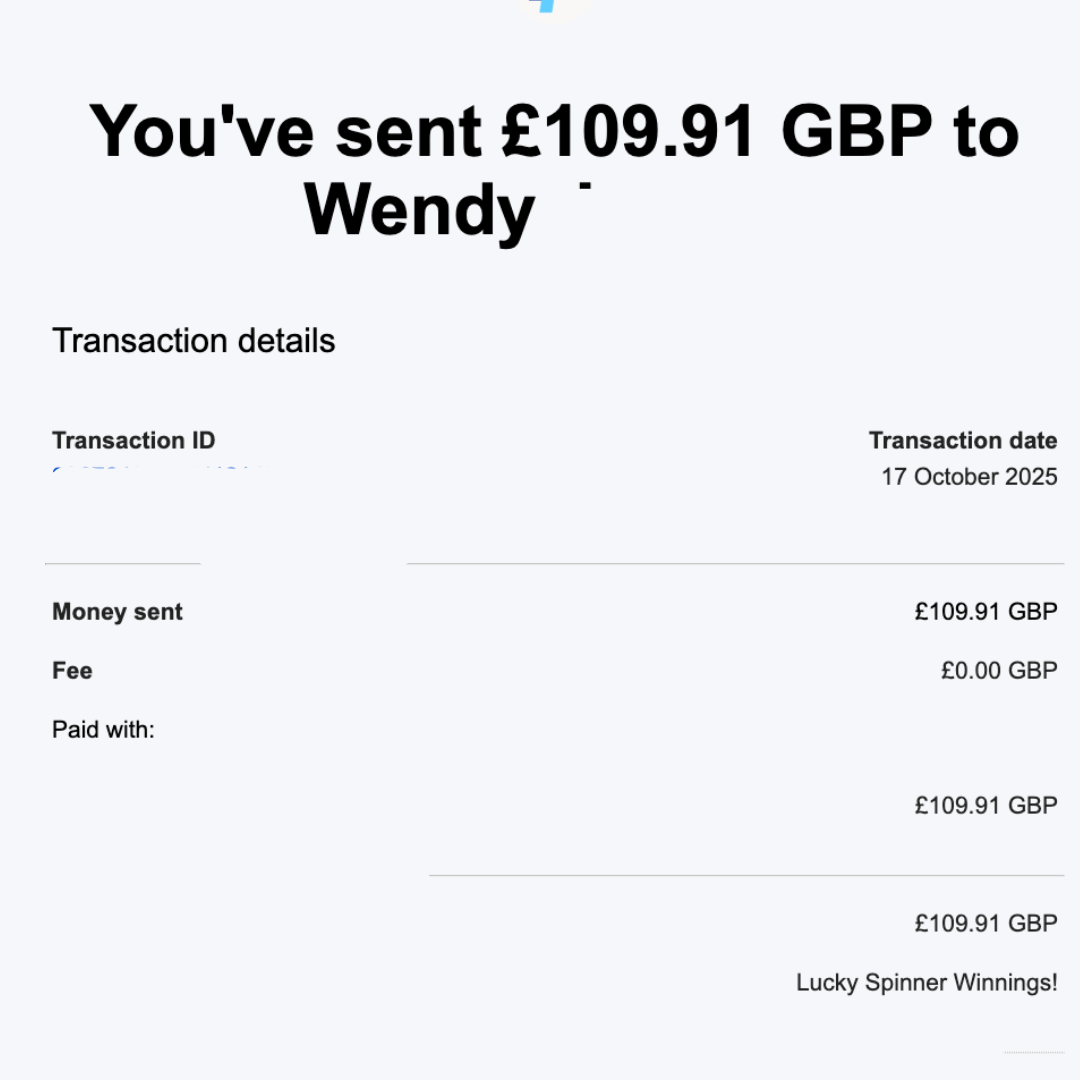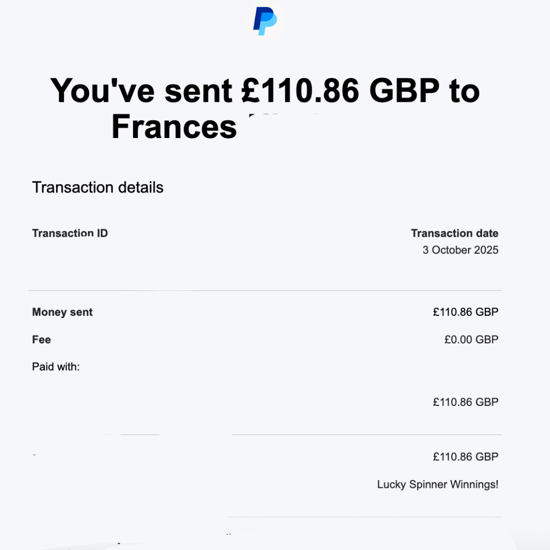 Well done to one of our Lucky Spinner members on winning over £100 on our Lucky Spinner video draw! 🥳